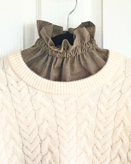 Handmade Sage Grey Windowpane Check Stretch-fit Pop-on Collar