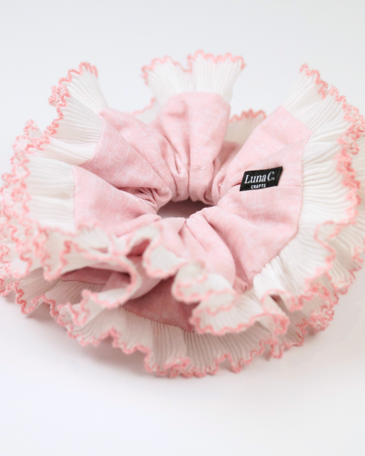 FLOWER by Luna C. Bride-to-Be Edition Double Layer White Ruffles in Cherry Blossom Pink Scrunchie