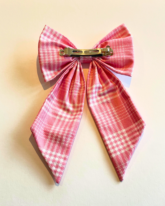 Pink Plaid Swallow's Tail Hair Bow Clip
