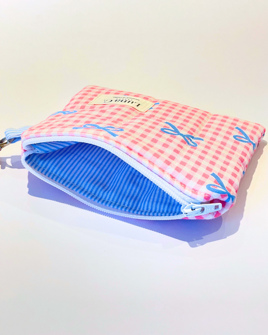 Pink and White Gingham with Blue Flying Bows Keychain Wallet