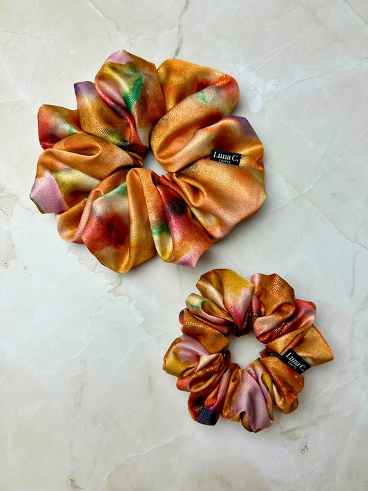Pink and White Gingham with Blue Bow Accents Oversized Scrunchie