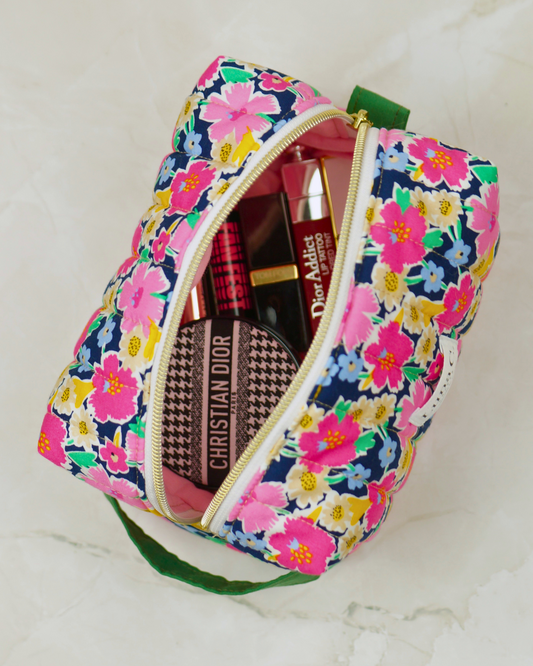 Blossom Pink Floral Quilted Makeup Bag – Small Size