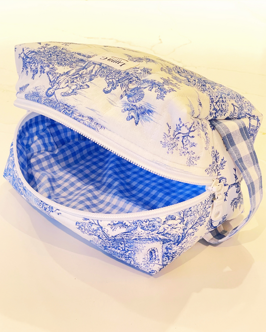 Makeup Bag in Toile de Jouy Blue - Large Size