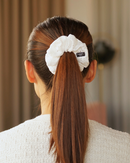 Classic Natural White Cotton Broderie Anglaise Regular Size Scrunchie