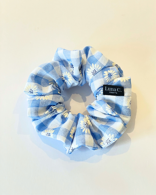 Light Blue and White Gingham with Daisy Florals Regular-size Scrunchie