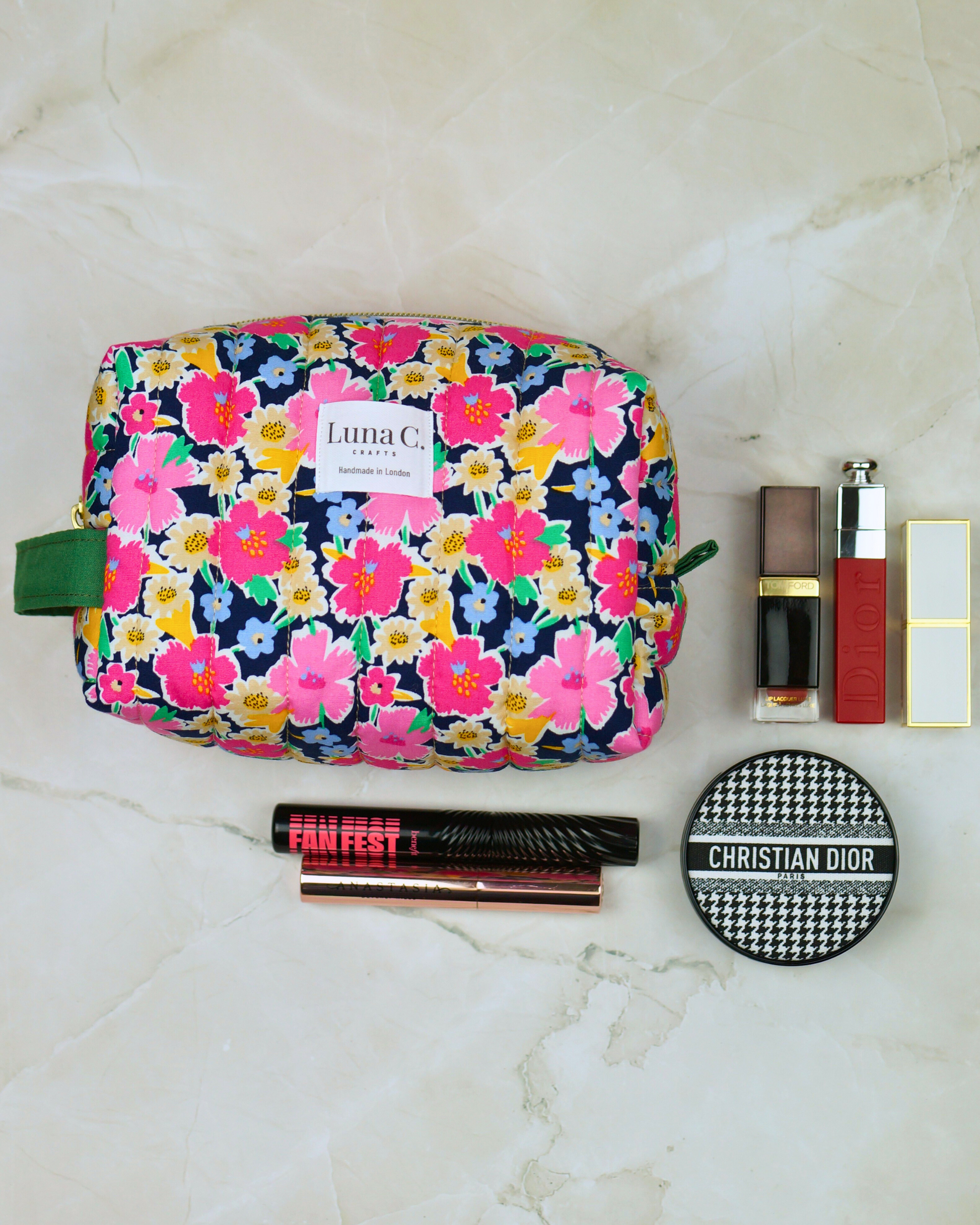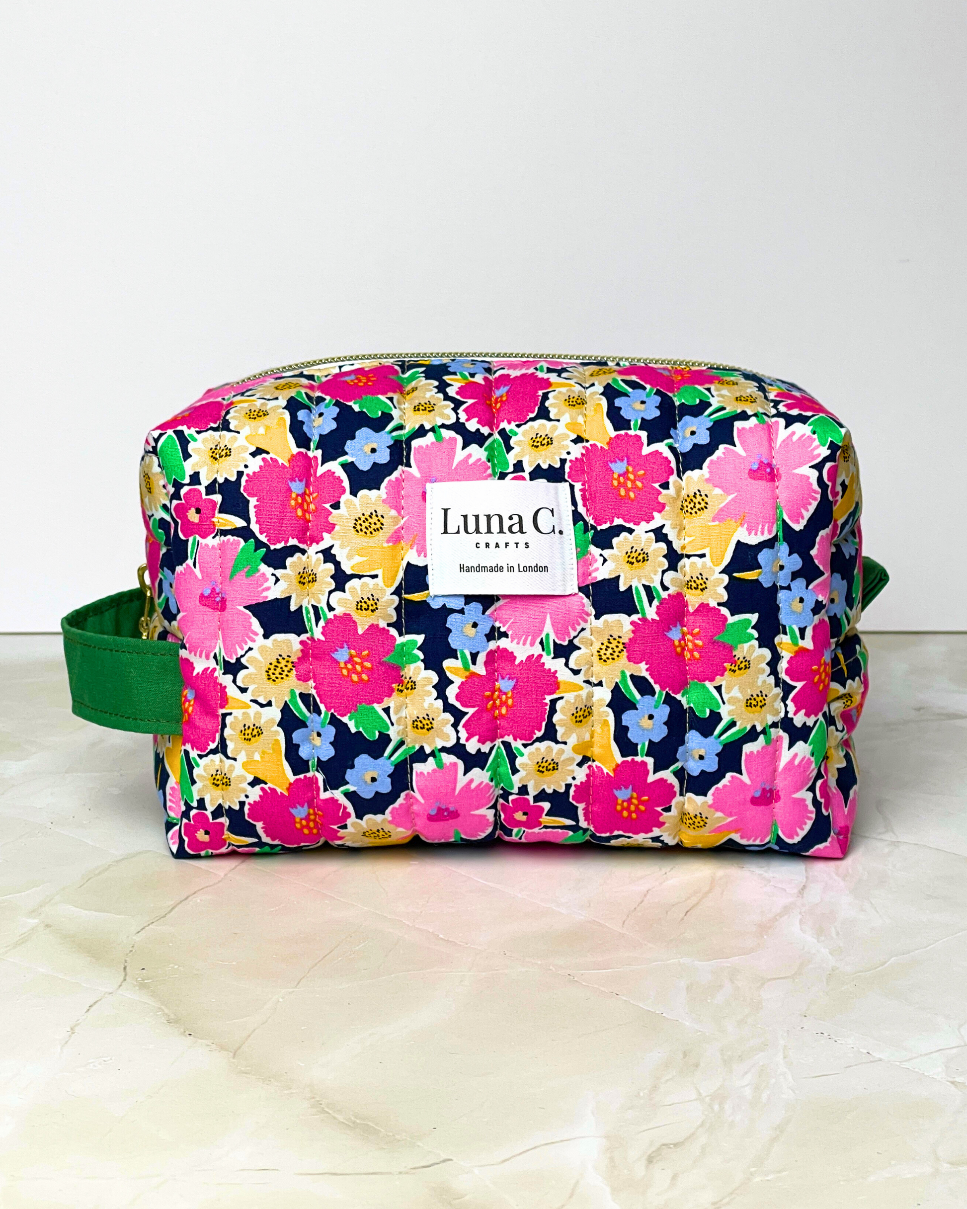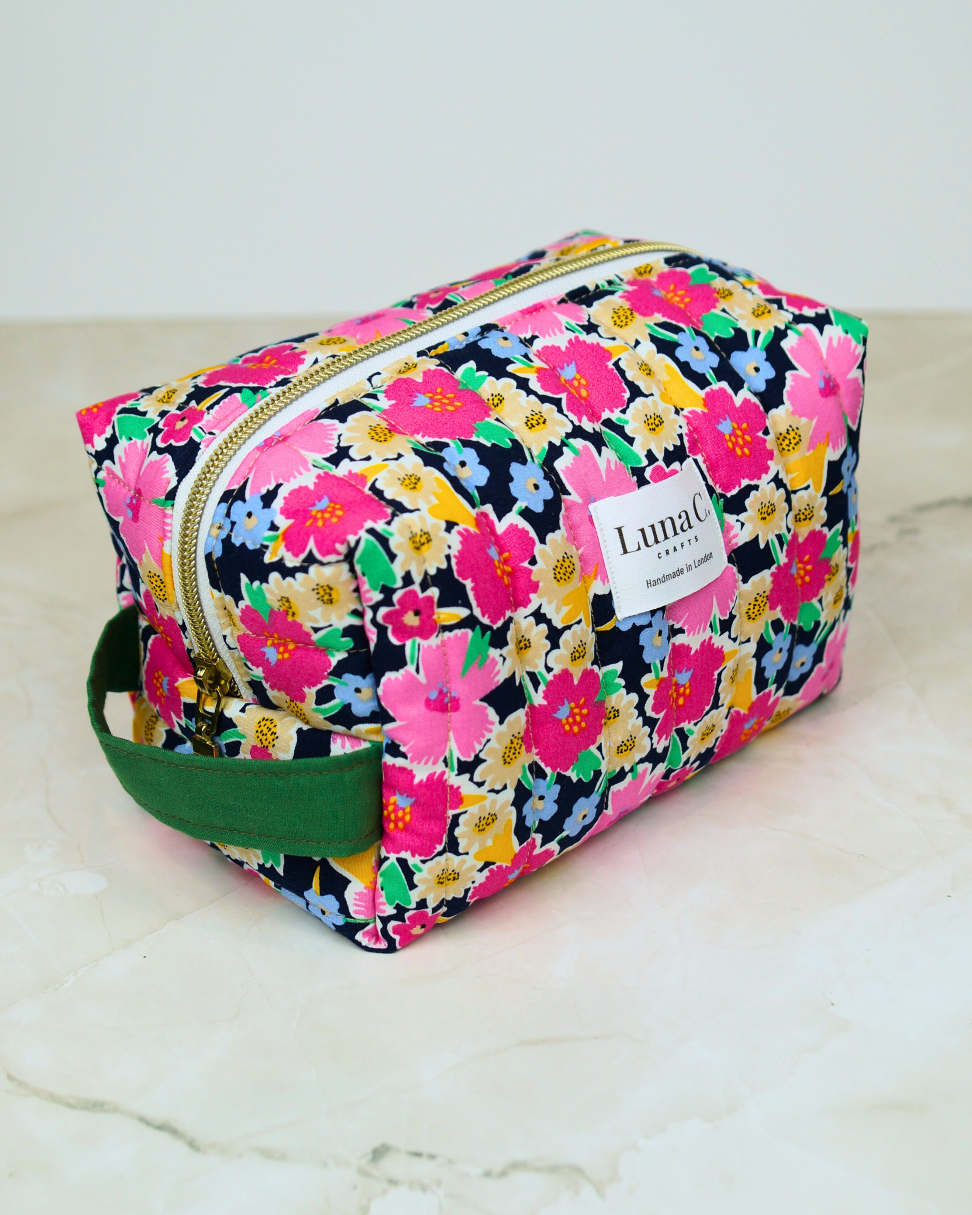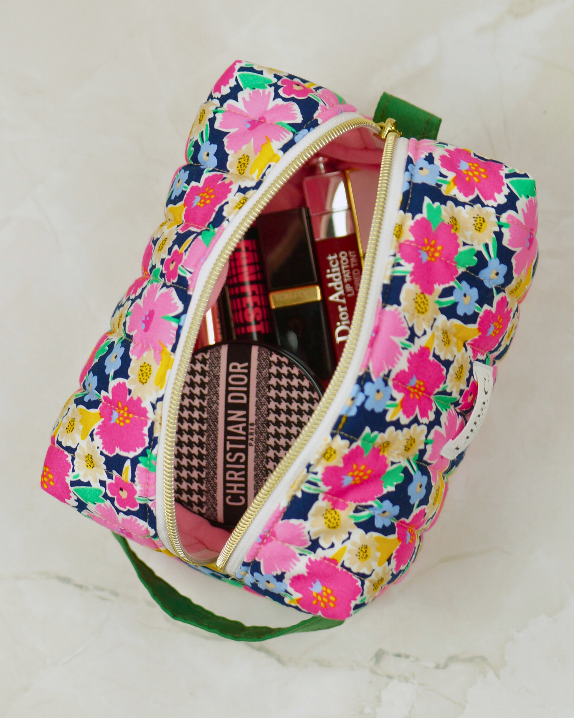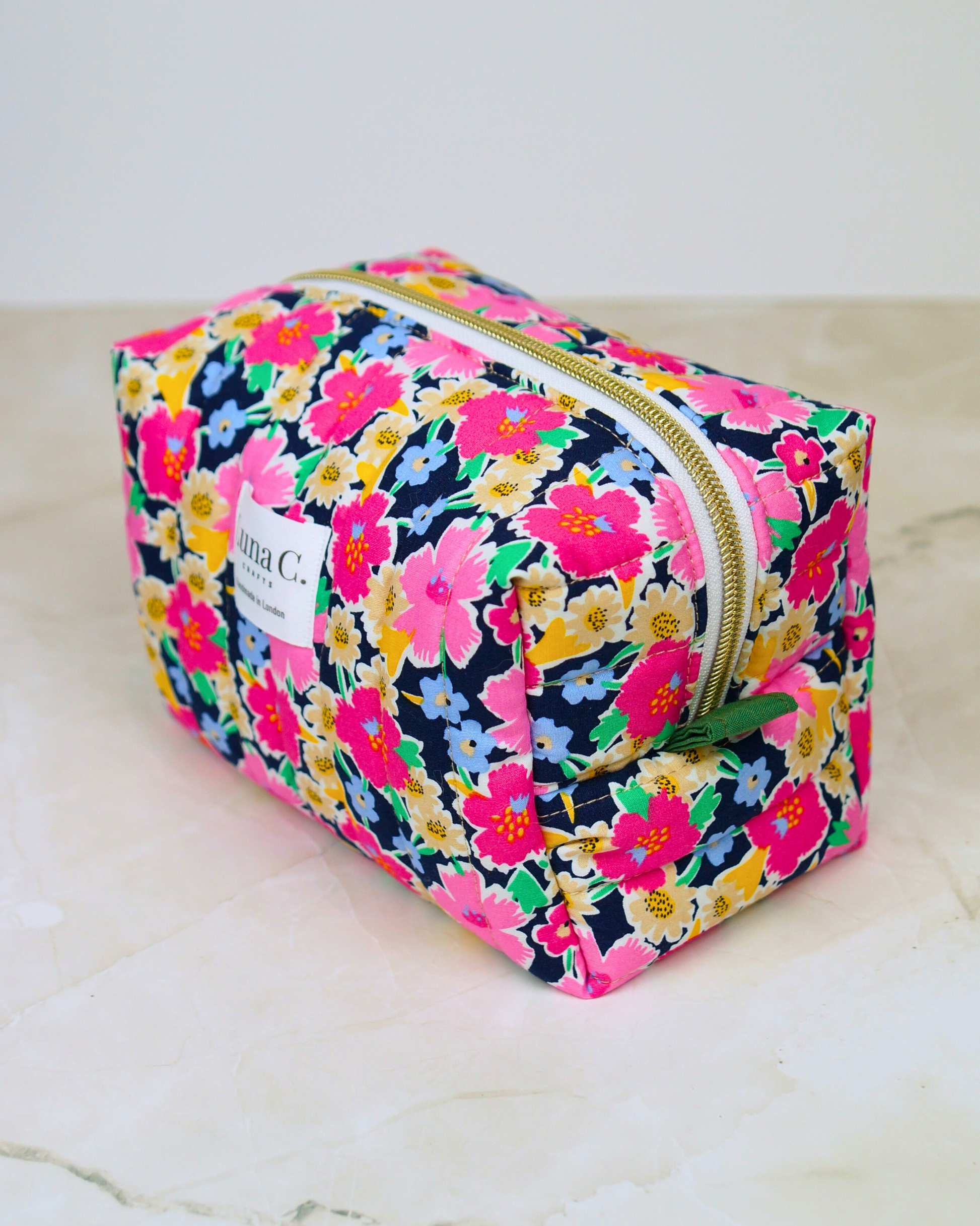 Blossom Pink Floral Quilted Makeup Bag - Large Size