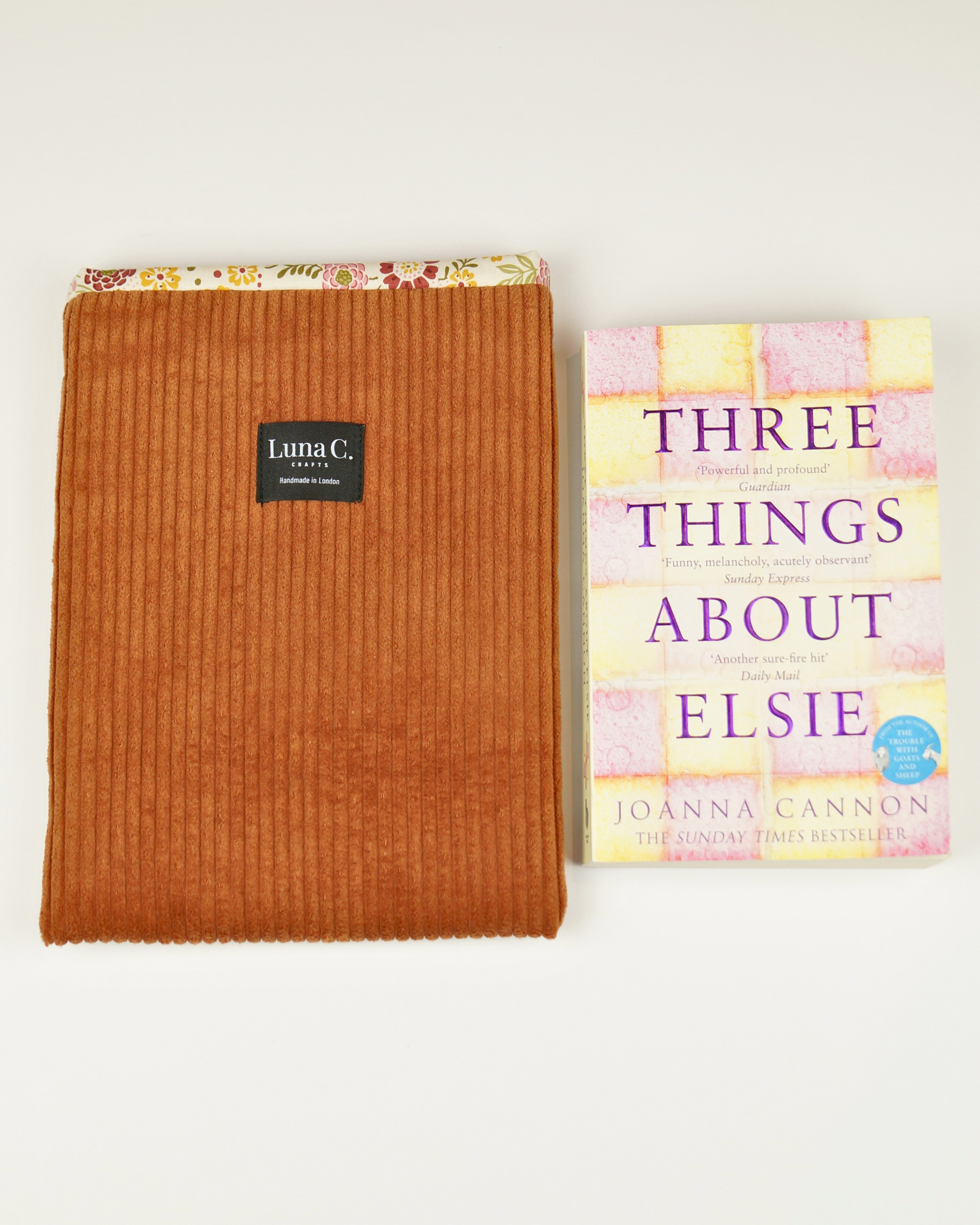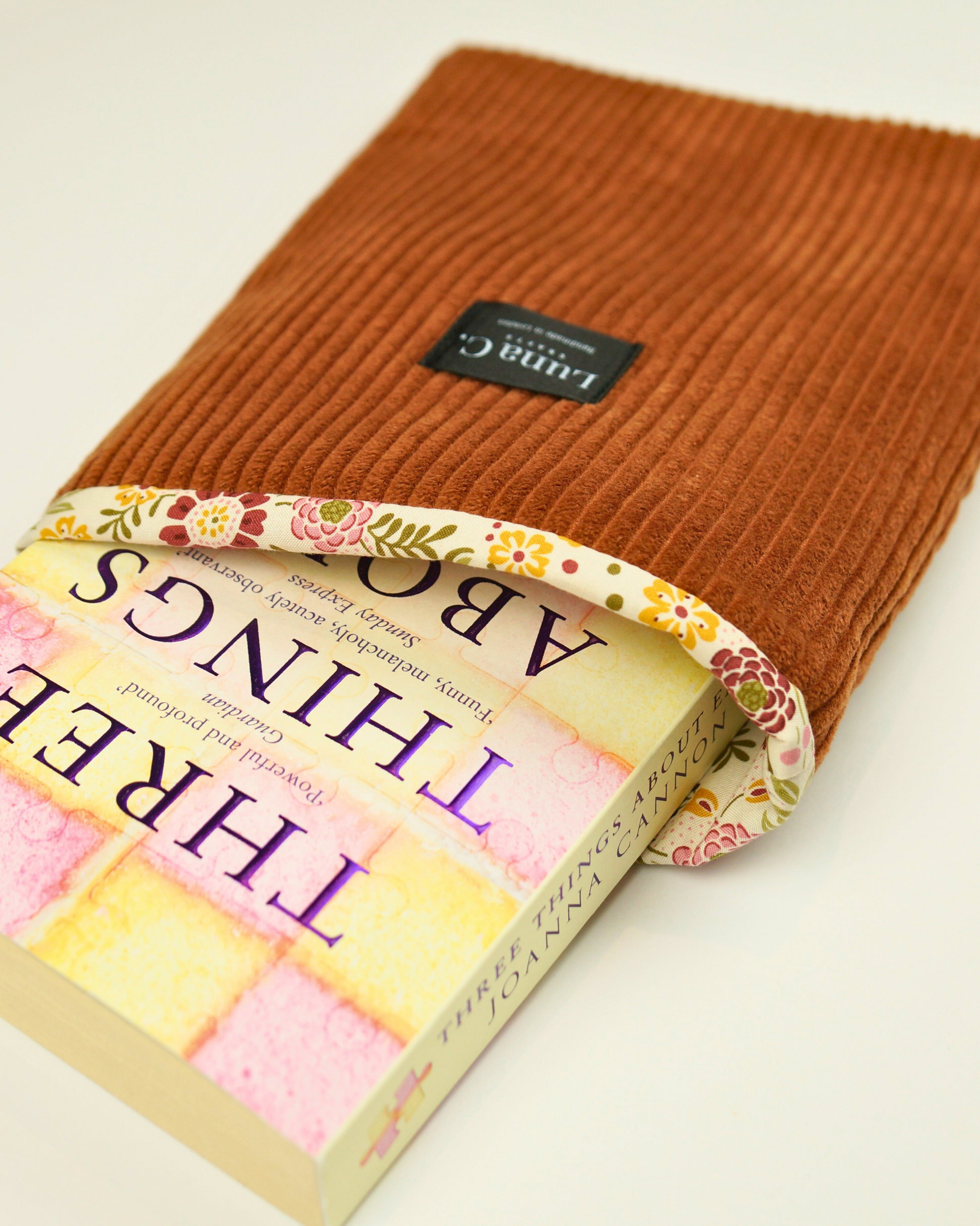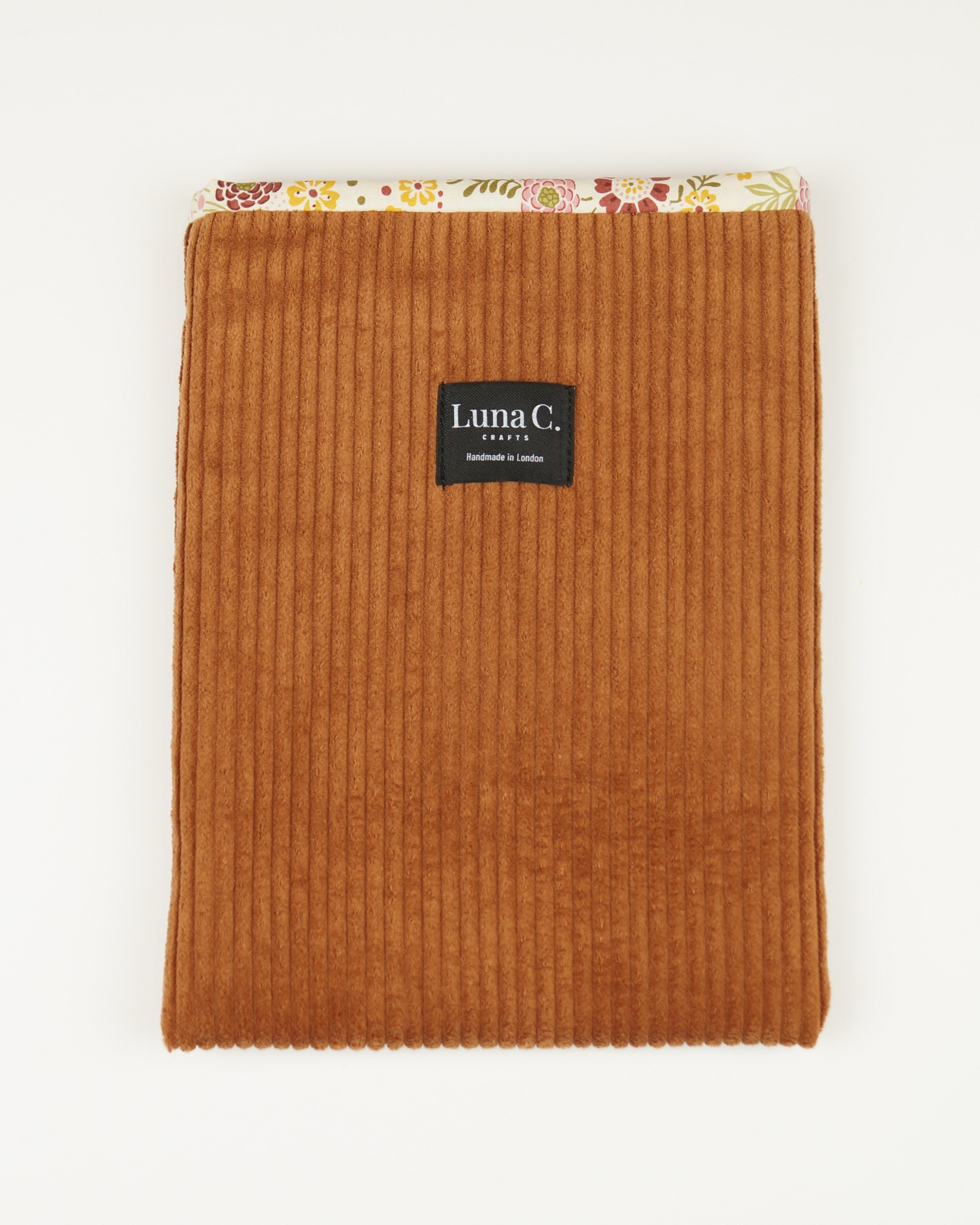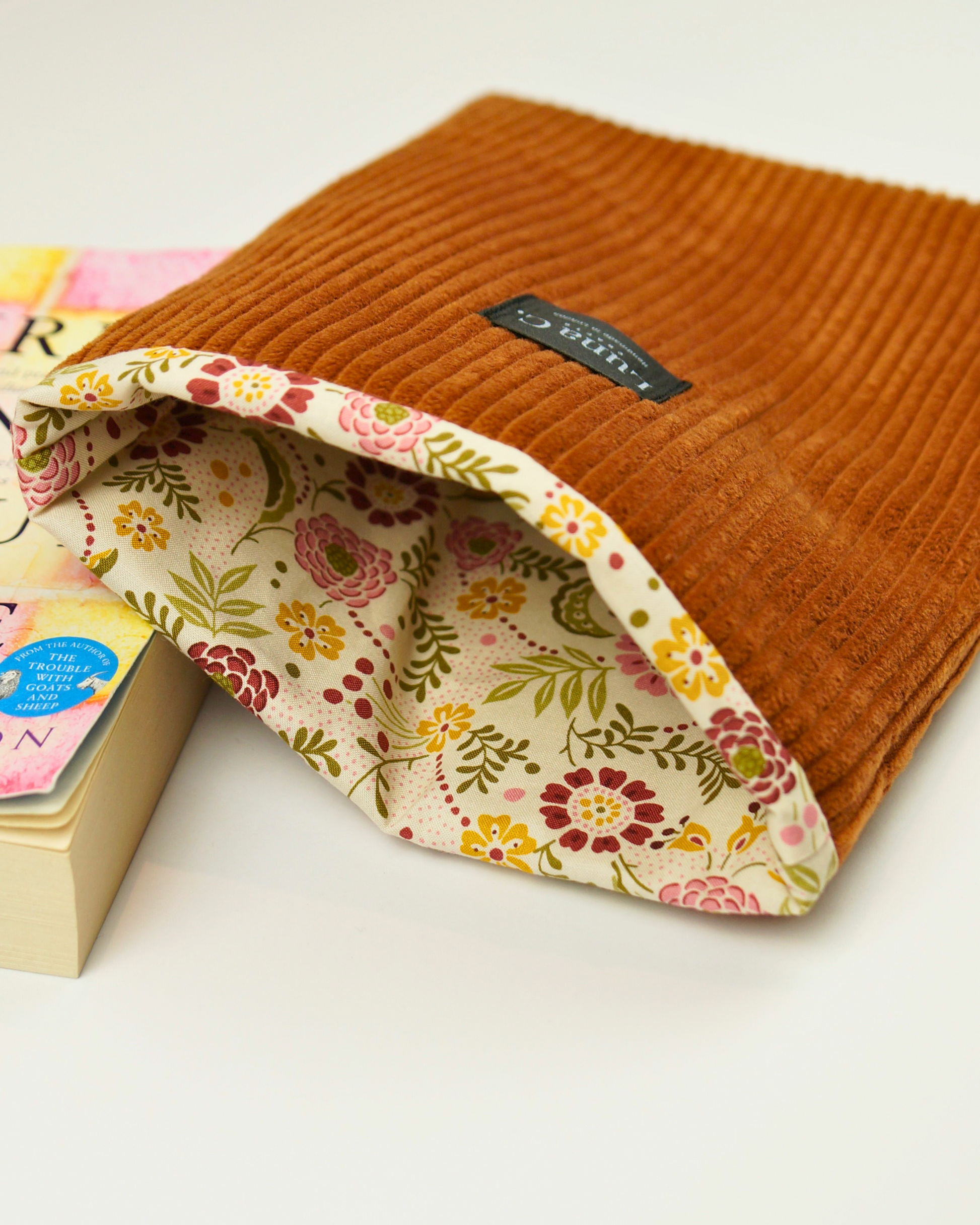 Caramel Brown Corduroy Floral Cotton Lining Book Sleeve