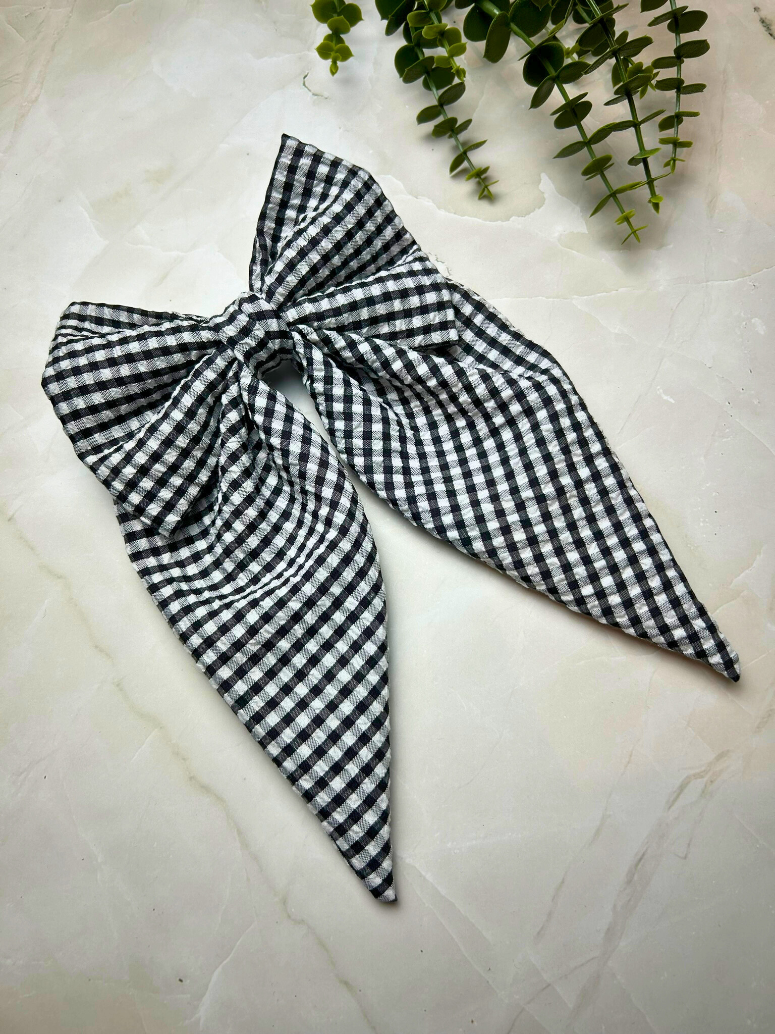 Black Small Plaid Large Bow Hair Clip