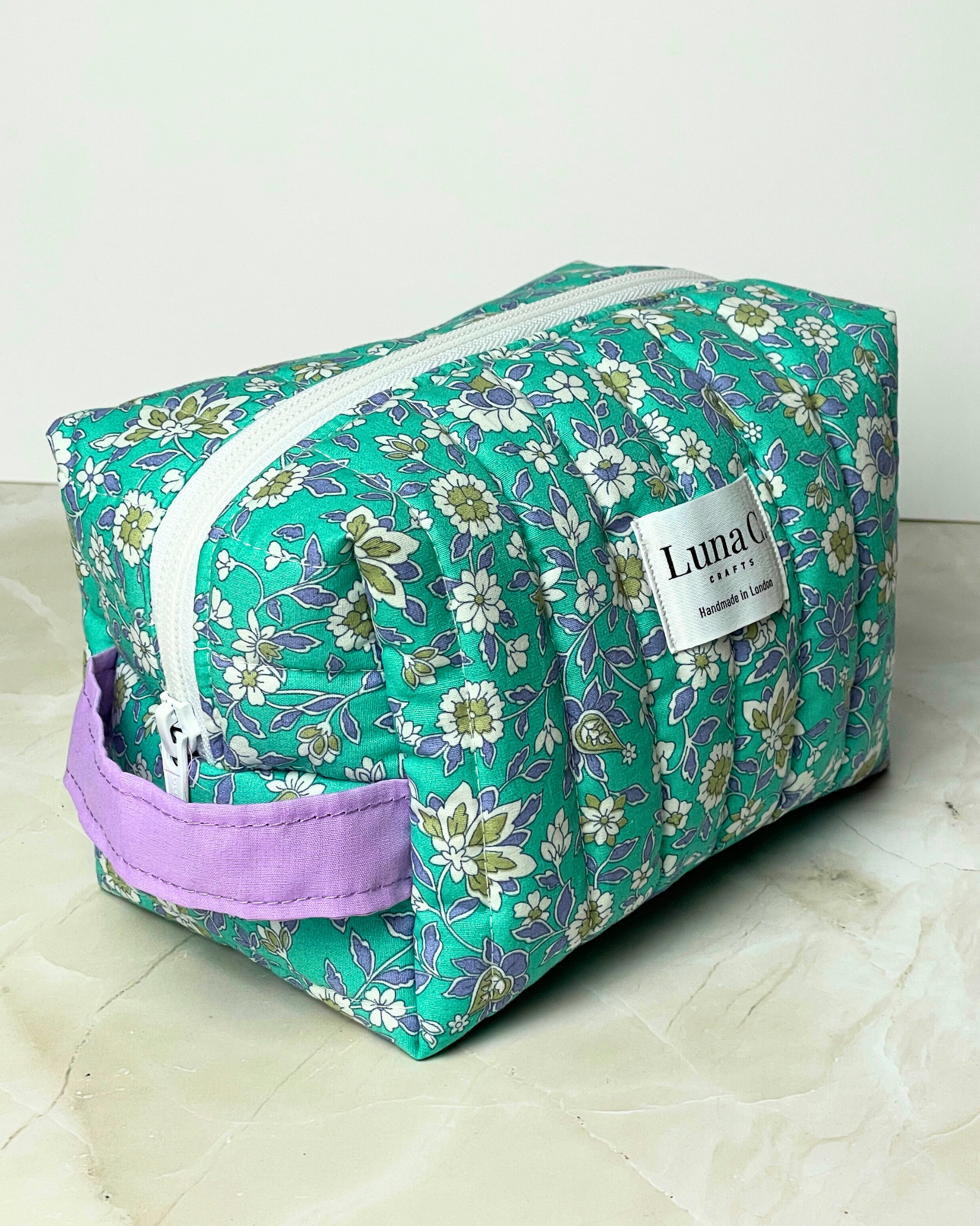 Eucalyptus Blue Floral Quilted Makeup Bag – Large Size